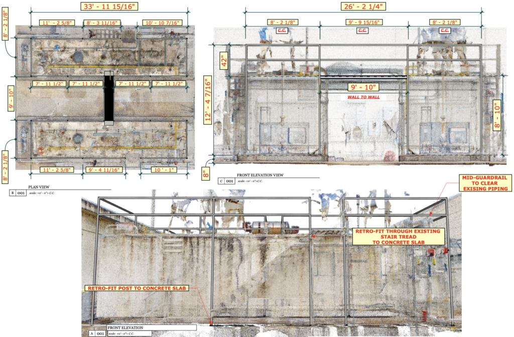 Once the area is scanned and all necessary data is collected, our experts get to work on designing a solution that is not just effective but perfectly adapted to your specific environment. This involves integrating the proposed access design directly into the LiDAR scan, allowing us to explore and tweak the design in a virtual representation of your space.