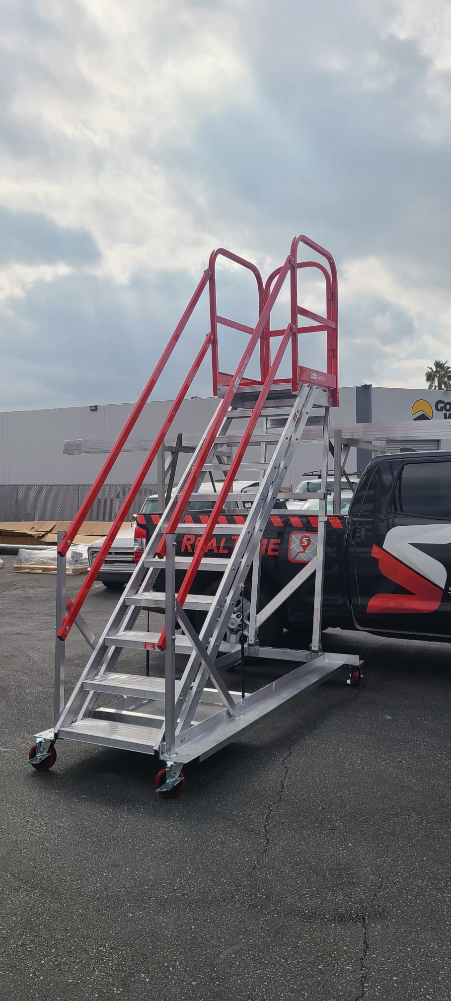 The AdjustaStairs with chassis system, optionally equipped with custom gates on either side, makes temporary access and maintenance easy.