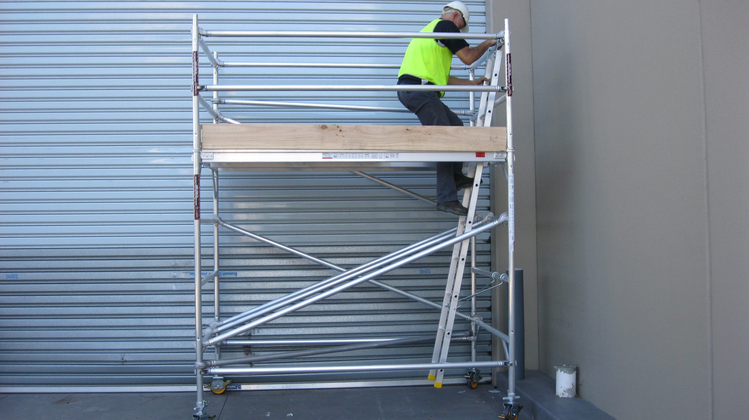 Putting together makeshift scaffold components or inadequate ladders for those lower-height jobs? Need to work on one section and then easily move to another without dismantling and re-installing scaffold? With a large percentage of workplace accidents and injuries occurring via falls from height, you can’t afford the downtime or financial loss. Look for mobile scaffold towers that comply with safety regulations and bring efficiency to your worksite. Look to SafeSmart’s Aluminum Scaffold Tower, from the Professional series, in double width.