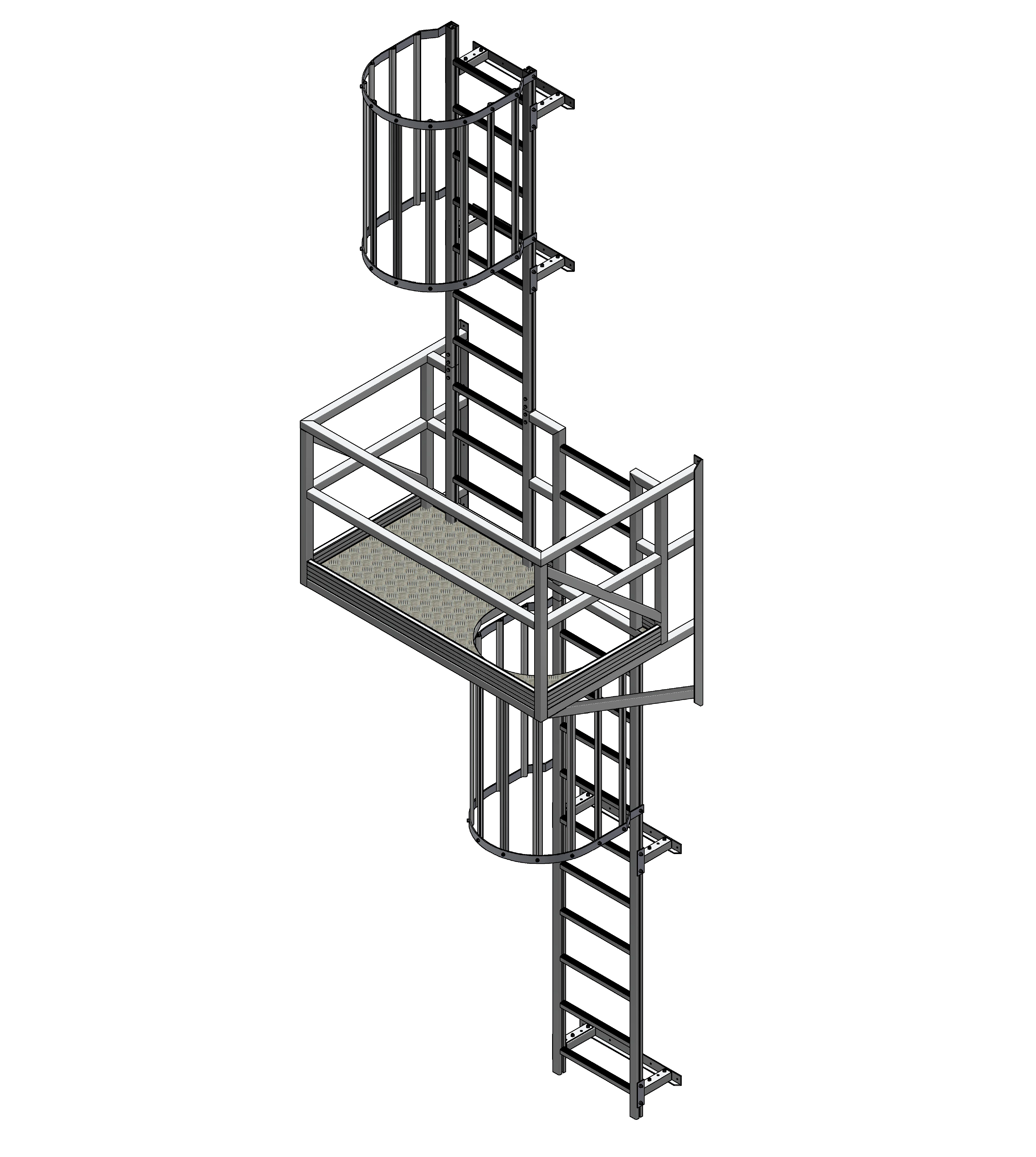 a. To comply with Australian Standards, an intermediate landing will be required where the uninterrupted climb distance between the access points is greater than 19’L, SKU: 210435 – Silo Ladder Intermediate Landing.