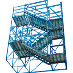 Made from SafeSmart’s very own steel Proscaf, this scaffold tower system saves time and money on site pre-assemble off site and simply crane the pre-erected tower into position, thanks to its certified lifting points. Two configuration options accommodate either stretcher stairs (52’6″) or our Z stairs (65’7″ height).