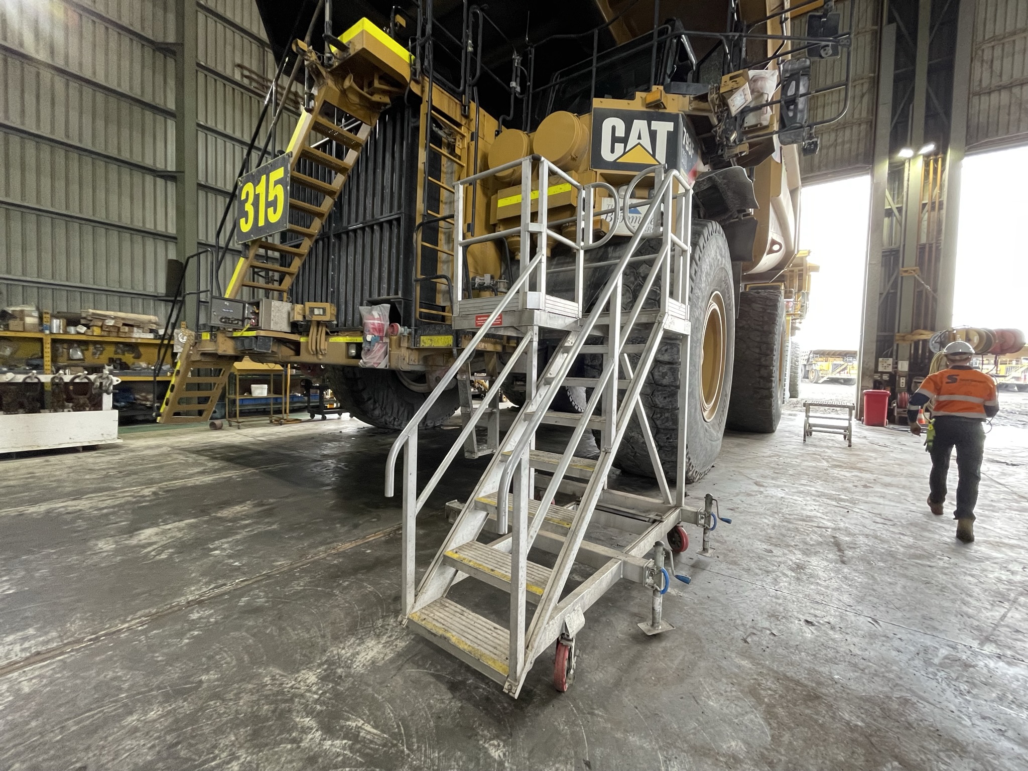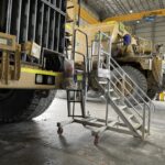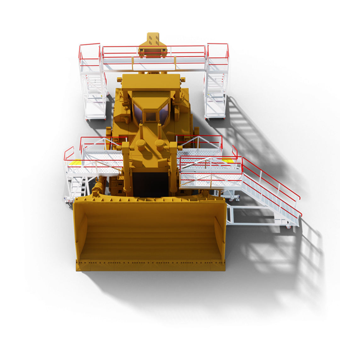 This platform was designed with the restricted space in mining workshops, in mind. With a side cantilever that allows access over the push arm to the dozer track, this design provides perfect access and egress to the engine bay. Supplied in a LH and RH combination also allows for complete access during breakdowns, strips, rebuilds and general repairs.