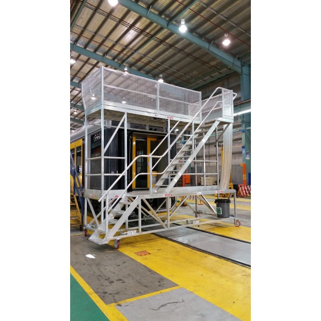 Originally designed for a client in Sydney who operate and maintain metropolitan trains. For routine maintenance, this platform allows for safe access to inside the carriages and to the roof of the train without any height adjustments.