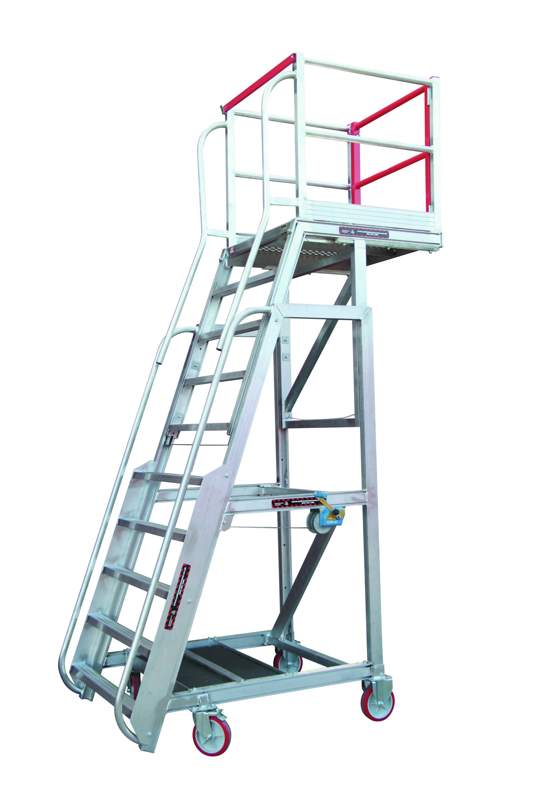 For use in any industry that requires safe and quick mobile access platforms to low level heights to carry out a variance of tasks. Compliant with OH&S standards, the EasyRaise adjustable mobile work platform is made from high-grade aluminum for strength and maneuverability, and is operated with a manual winch for adjustments in a range of 55″ to 110″ (1400 x 1800mm) platform heights.