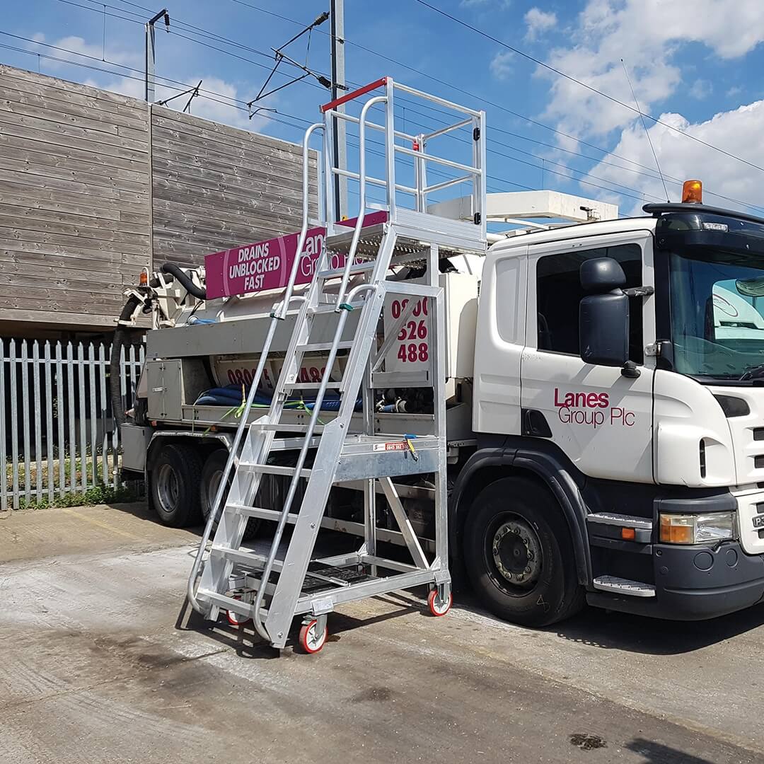 Rated at 495lbs (225kg) SWL, and with deck dimensions 31.5″ x 39.5″ (800 x 1000mm), this unit allows the worker to remain at height safely with tools without having to climb up and down during works.