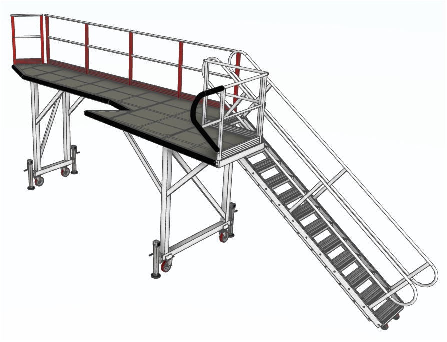 Self-leveling stairs, and adjustable height for efficient, safe, and flexible operations.
