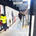 As a more permanent and effective option to using neoprene or plastic “humps”, this example concrete line ramp unit was designed in-house by SafeSmart and built by us for a client in Sydney who were running a concrete pump line across a public path which had to remain open to foot traffic as per council requirements.