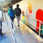 This bridge inclines and declines at an easy 1:14 gradient, to allow safe crossing by pedestrians of all abilities and with the risk of slipping.