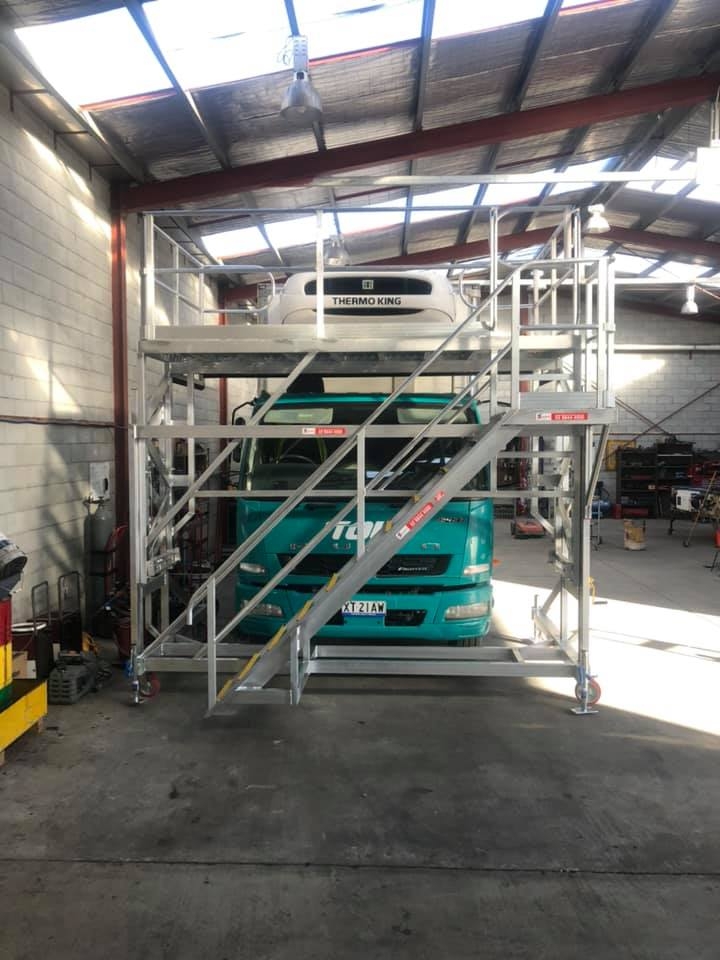 In this example, our client needed to access to mobile cooling units on the truck bodies, above the cab, on a range of trucks.