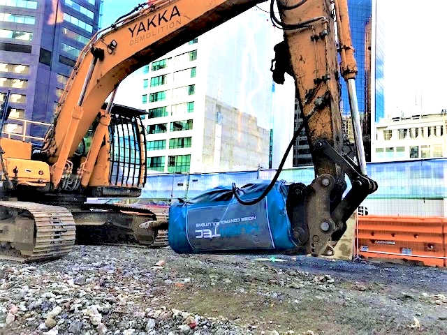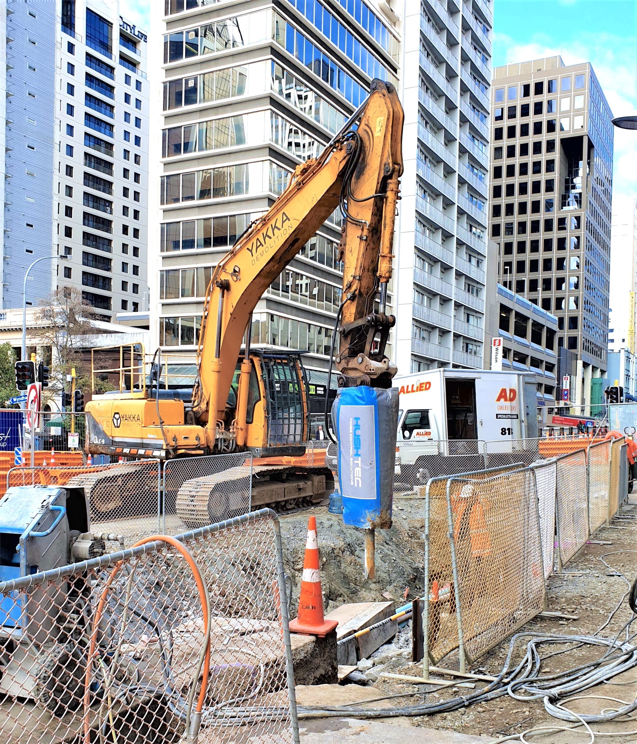 Preliminary field testing has shown a max reduction of 13dBA when measured at an 8 metre distance from the rock breaker. Although there are many different types of rock breakers available, we are seeing a 7-13 dB reduction when using our RW27 Hushtec custom-fitted attachment ,which is a very noticeable change in SPL to the human ear.