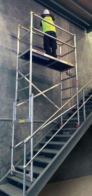 Particularly the All-Terrain Stair Pack – gain access to heights from the more unconventional places such as uneven ground, sloping surfaces and stairwells, so you can quickly and safely reach voids and cavities that were previously non-reachable. Perfectly adjust your Mini Mobile Scaffold to suit any stair height, by using the adjustable height castors, which are foot-lockable for stability – 47″ (1.2m) of adjustment.