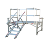 We design in-house, directly with the client, and build many solutions from high-grade aluminium – compliant with regulatory OSHA standards. This oil rig platform features height adjustability (0.3-1m), self-levelling stairs for accommodating different height ranges and towing lugs for easy transporting around the rig. This platform also has a 495lbs weight rating.