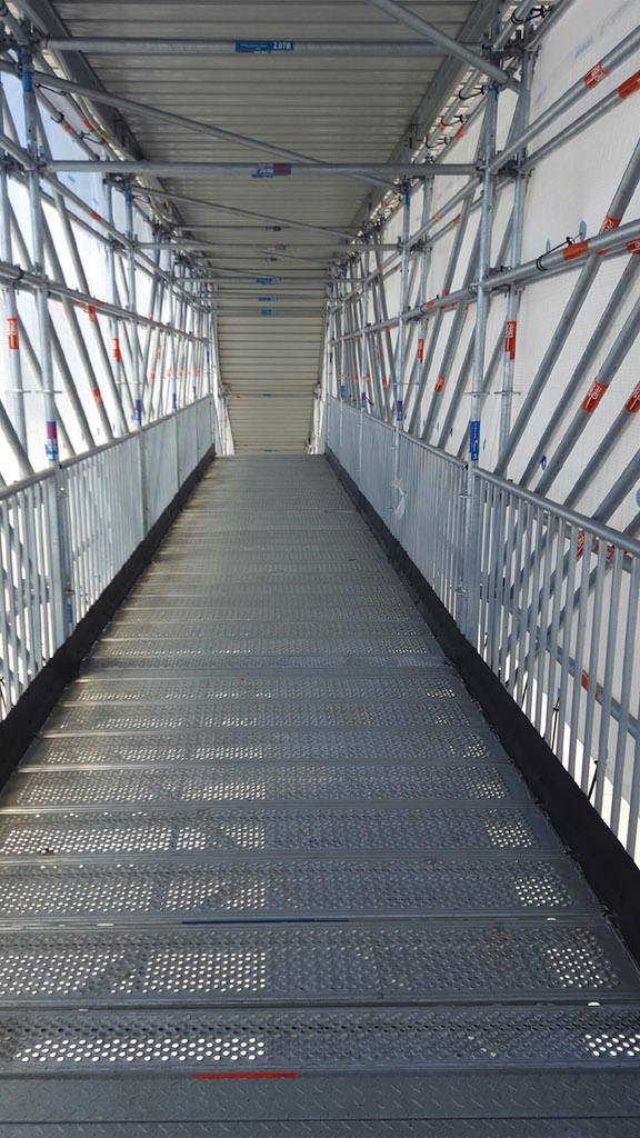 In many cases, SafeSmart designs and installs bridging systems using our very own Proscaf scaffolding as a core system. Proscaf accommodates a greater variance of tube join angles, so the options for making a system that scales around irregular-shaped obstacles and structures is easy to do. And we can incorporate elements into each client’s system that suits specific environments and types of uses – timber stair treads anti-slip nosing, marine grade weather-proof carpet, aluminium continuous treads, Monarflex wrap, timber framing, polycarbonate panels, anything.