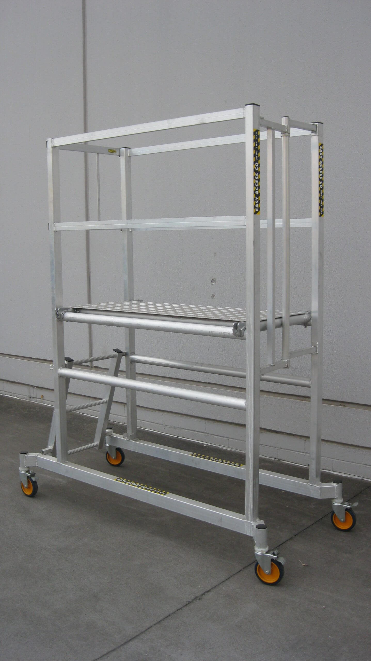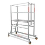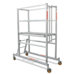 A podium Platform with Extra Room for quick and easy deployment in narrow, indoor, or confined spaces. Inspect, work, and maintain with this nifty platform.