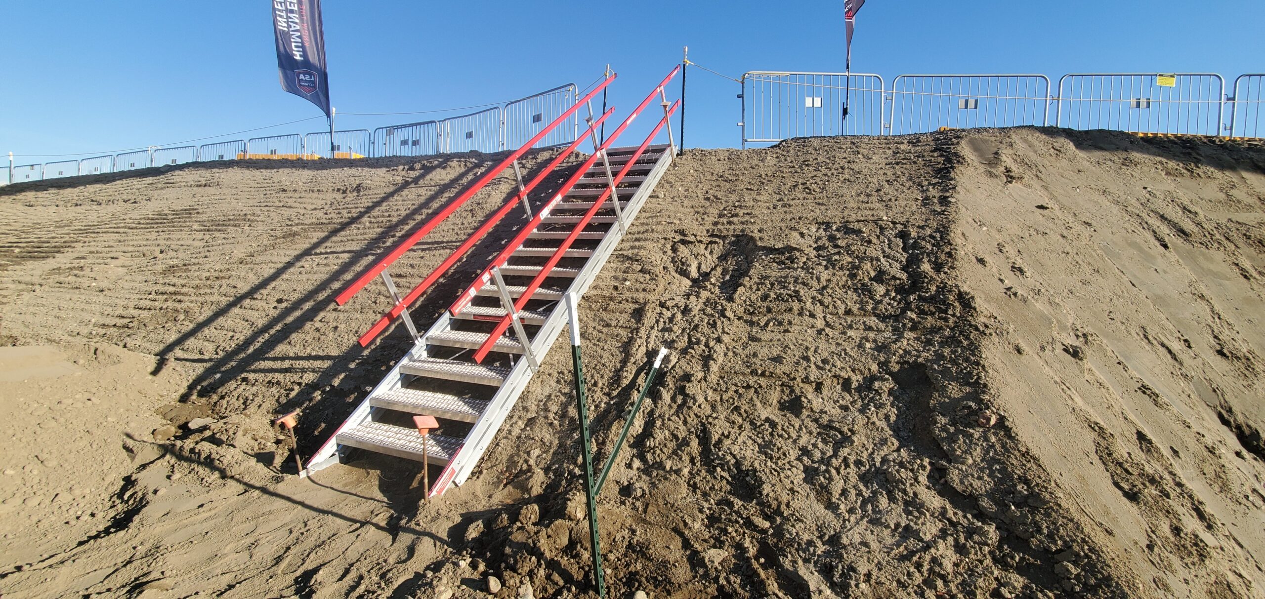 Made in Canada, and compliant with OH&S standards, these portable stairs are the perfect solution for easily and safely gaining temporary access to a variance of heights. These portable stairs have been used in a multitude of capacities: batter access, in and out of waterways, in staircase voids during construction, as well around trenches, excavations, and more.