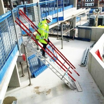 Self-levelling portable stairs allow for a variance of pitch angles and aluminum constructions means a combination of strength and easy portability. And a 600mm (24″) width, allows a worker to ascend the stairs with a hand free for tools.