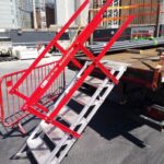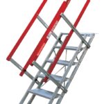 A development on our popular AdjustaStairs collapsible stairs adapted to securely attach to flatbeds trailer platforms.
