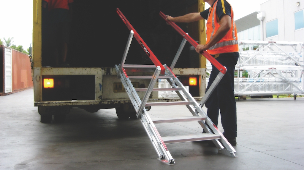 With SafeSmart’s knowledge of the transport industry, and the needs of dispatch and distribution workers, this product was designed especially for trucks. It folds flat for storage, and has self-levelling steps to accommodate a flat surface for your feet at a variance of stair pitch angles.