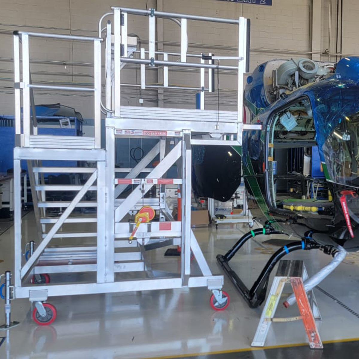 Engineered for the demands of modern helicopter maintenance, the RotoReach platform redefines safety, efficiency, and proximity access in aviation environments. Purpose-built for rotary aircraft applications, RotoReach gives technicians a stable, OSHA-compliant platform that brings them closer to critical components—without compromising maneuverability or site flexibility.