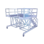 This platform allows the service people to walk completely around the rotor, carrying heavy equipment, tools or replacement parts, without having to climb up and down frequently. The large deck caters for a forklift or gantry crane to lift heavy parts onto the platform, and large heavy-duty castors allow for easy hand-manoeuvrability.