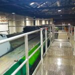• Stairway access, 11 steps, 45 degree angle of slope, grip tread extrusion steps with fibreglass anti-skid nosings.