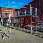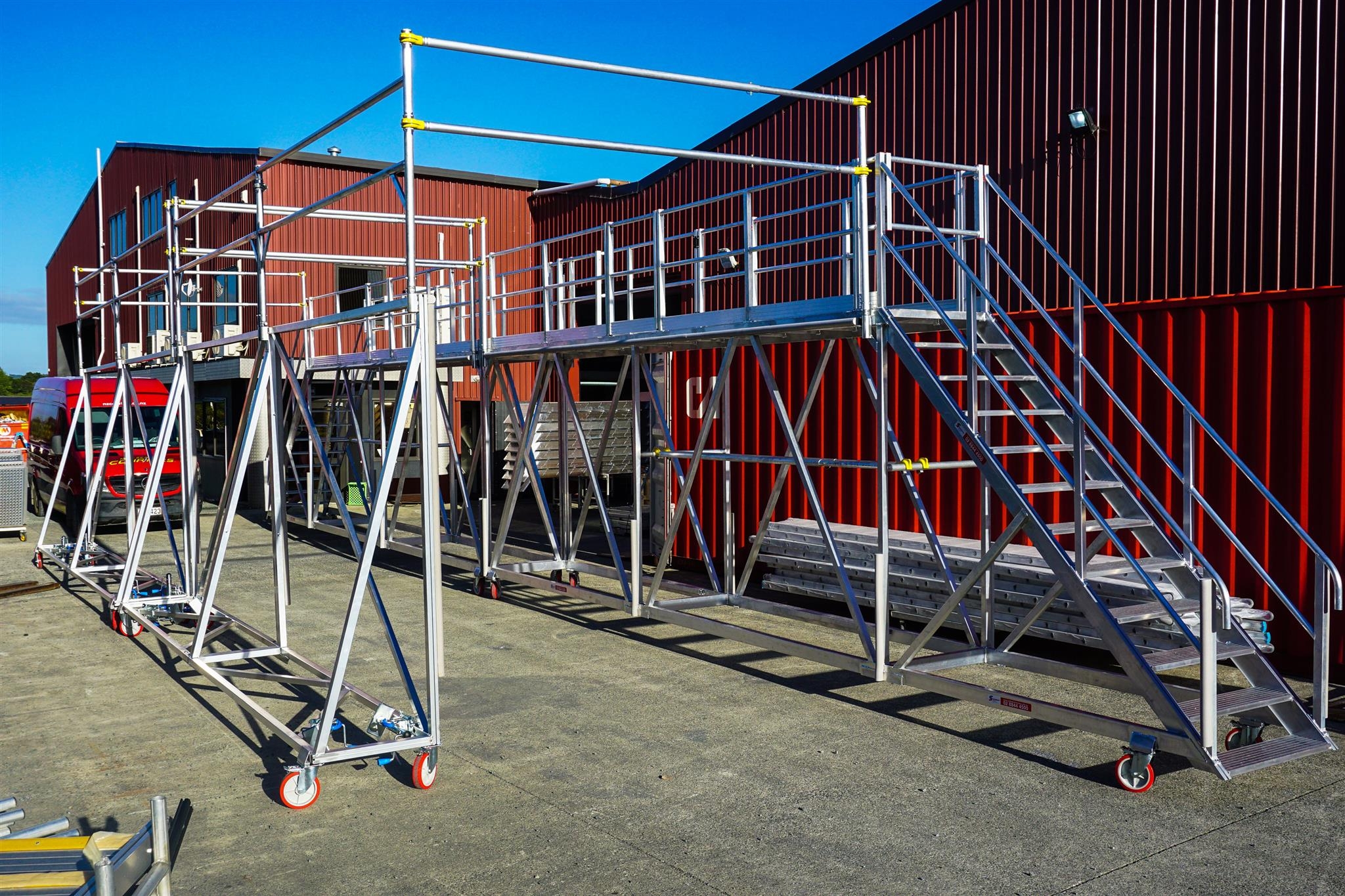 • Guardrail, midrail and toeboard frames to both sides of the platform with an access gate central on one side.