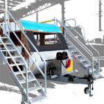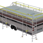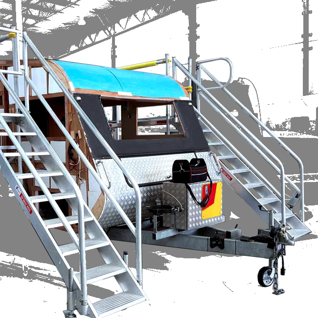 Utilising the proven components of our Mini Mobile system, including custom stairs, longboard packs, and corner packs, the U-Shaped Vehicle Access Platform seamlessly creates two side platforms and a rear joining platform. This configuration provides optimal accessibility and manoeuvrability, allowing workers to efficiently carry out caravan builds with ease.